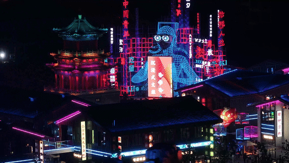 山西太原行浸式赛博街区「清源水城·市楼水街」
